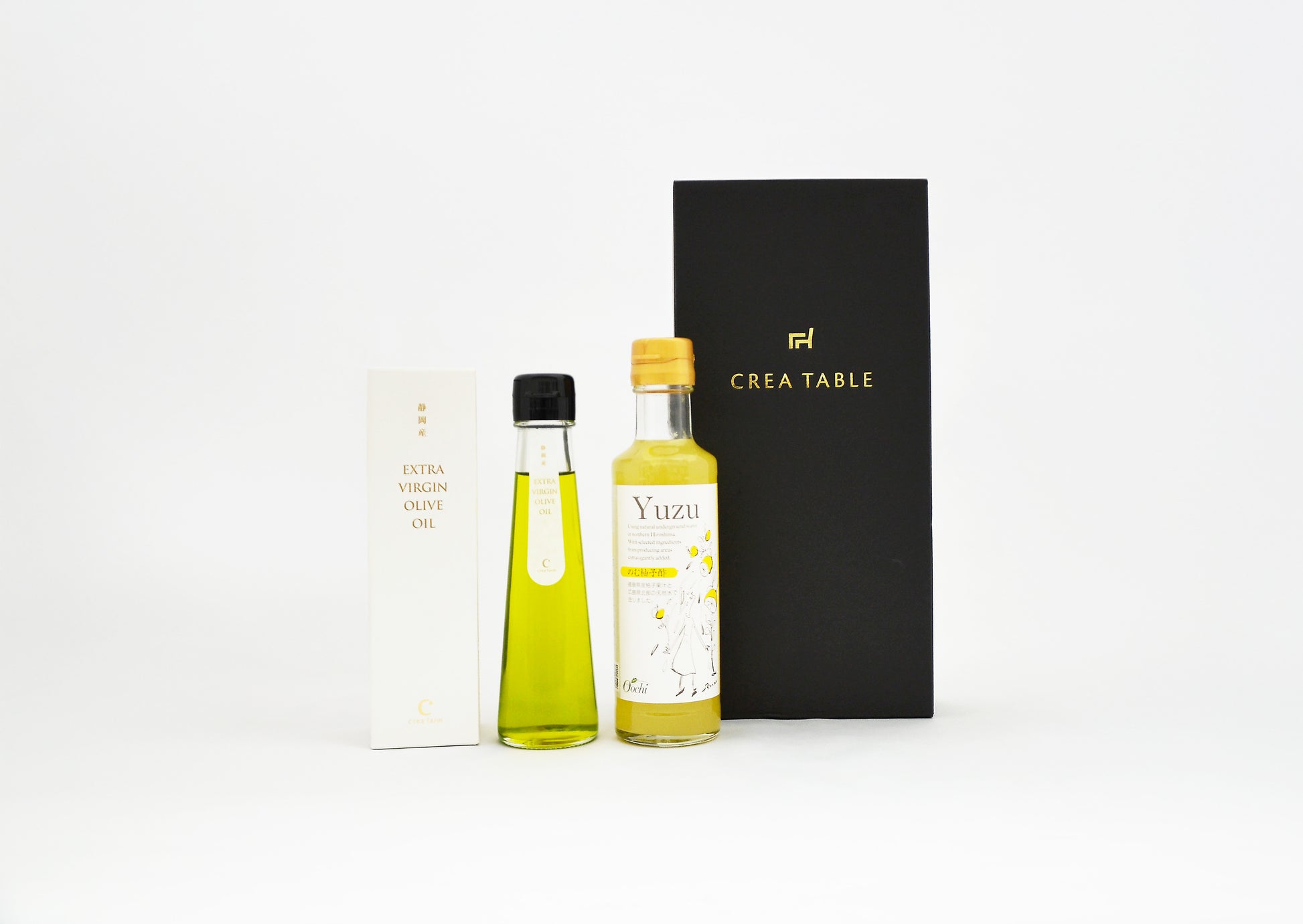 爽やかなウェルネスドリンク「のむ柚子酢」と、コールドプレス製法で搾油したプレミアムなエキストラバージンオリーブオイルのギフトセット。